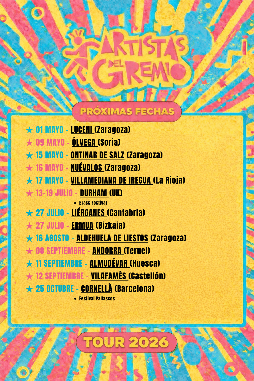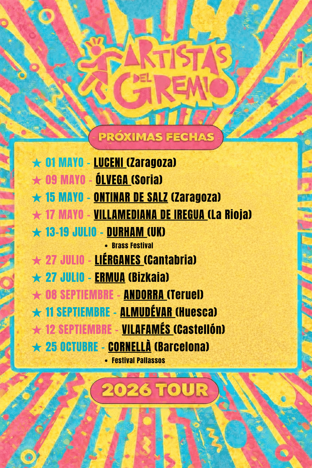 La musicalidad de nuestros arreglos y nuestro espíritu festivo nos han permitido llevar nuestra música a más de 10 países. Hemos sido la banda sonora de cientos de eventos festivos repartidos por toda Europa y latinoamérica, desde fiestas populares a festivales de música de calle, folk, brass bands o artes escénicas.